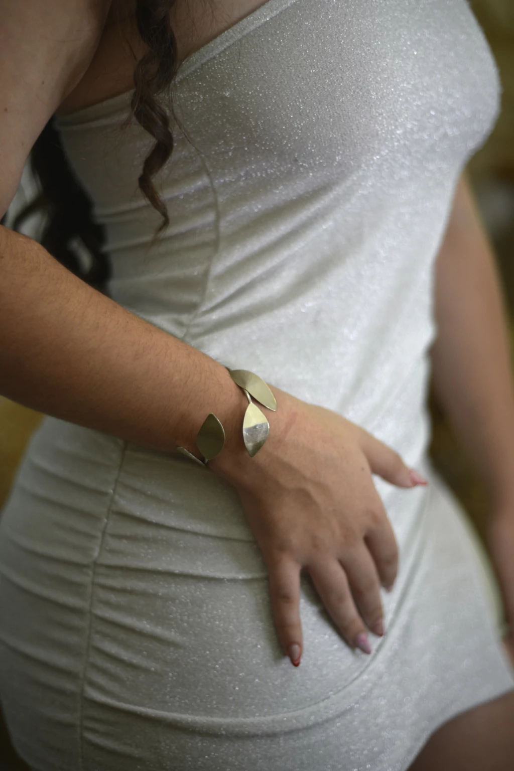 La Pulsera Georgia es una joya única, realizada artesanalmente con alpaca o bronce, diseñada para adaptarse a cada medida. Su diseño abierto en los extremos facilita su colocación, convirtiéndola en una opción práctica y elegante.