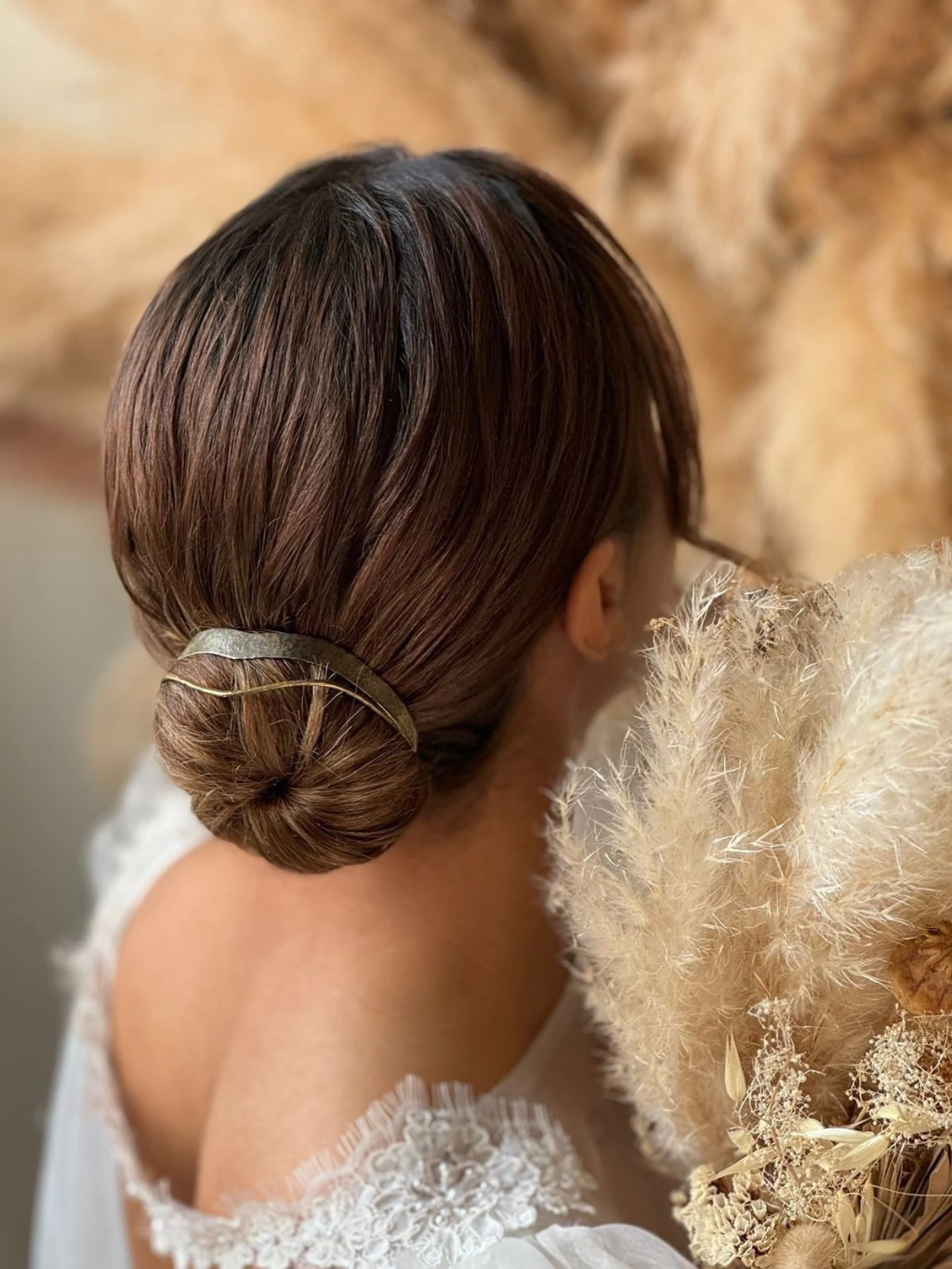 Descubre el Rodetero Mixto "Nina", un accesorio artesanal que combina la belleza del Alpaca y el Bronce. Con su textura hecha a mano, este rodetero es la elección perfecta para realzar cualquier peinado recogido, adaptándose a tu estilo personal gracias a su material semi blando.