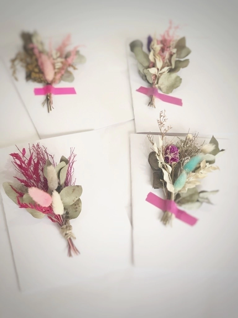 Tarjeta Floral de papel ilustración (de 106 gramos) con mini Ramito. Varios colores de Ramitos disponibles.