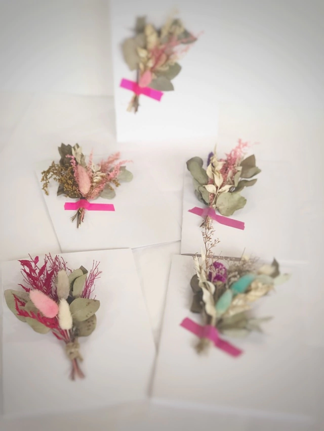 Tarjeta Floral de papel ilustración (de 106 gramos) con mini Ramito. Varios colores de Ramitos disponibles.